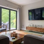 El diseño interior viene con un sofá, así como internet de alta velocidad y TV. Los cuartos de baño también disponen de un inodoro separado y una ducha. Además, los huéspedes pueden disfrutar de la comodidad de la secadora.